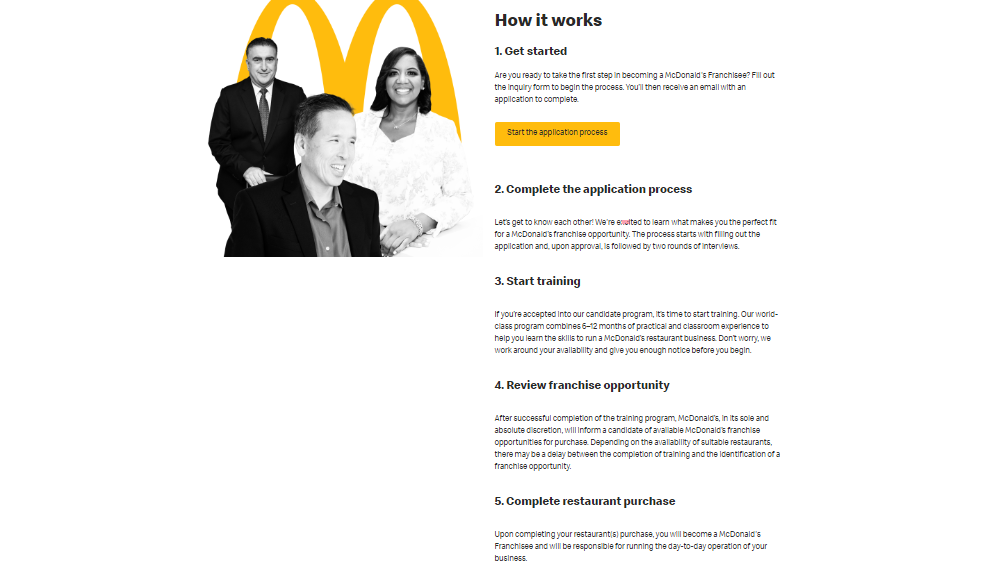 Prospective franchisees begin by expressing interest through preliminary research, usually through McDonald’s official website or direct contact with the franchise department. McDonald’s has specific eligibility criteria, including financial stability, operational expertise and a commitment to McDonald’s standards of quality and service.