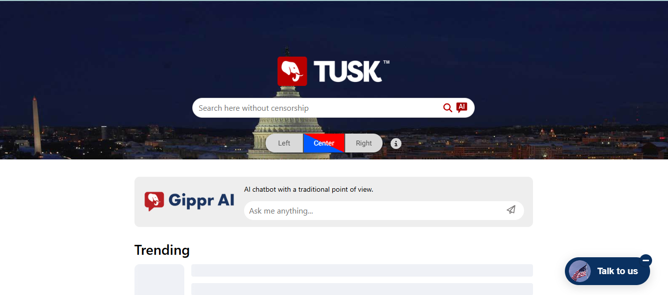 Tusk Search is among the most important search engines matching the conservative line; its main aim is to guarantee speech and balanced results. Although it was made primarily for the conservative audience, it has the feature that allows the users to filter news and search results based on their political ideology – right, left, or center, so it is you who determines what you will see.
